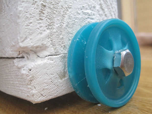 Tenga cuidado al perforar los agujeros para los tornillos - no tengo los derecho en 90° para que las ruedas fueron un poco fuera del eje... También elegir los equipos que tienen un espacio "vacío" entre la hed y la parte del tornillo - que es cómo las ruedas hacer girar más fácilmente.