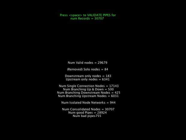 (1) no era totalmente limpia, lo que significa que los datos de tubería no coincidan con todos los nodos. Había algunas cadenas de identificación que fueron duplicados, falta y más. Sobre todo estaba bien, pero necesita cuidado algorítmica.