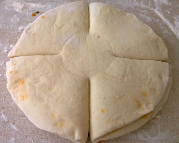 Desde el borde del guión al borde de la disco hacen 4 cortes en los lados opuestos en cuanto a hacer incluso cuartos