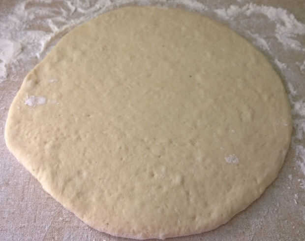 Rollo de cada una de las 4 piezas de masa en un disco que cabe en la bandeja para hornear