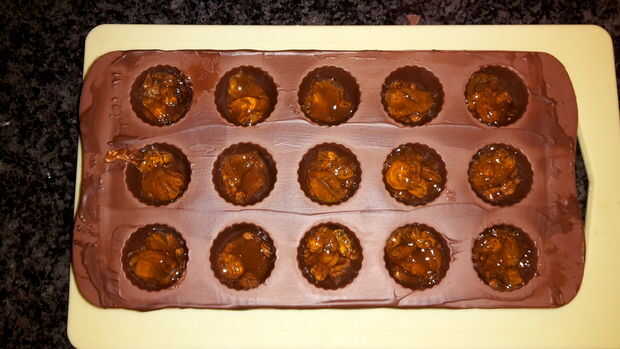 Una vez hecho esto poner las cáscaras llenadas de nuevo en el congelador durante 5 minutos. Esto es importante!!!!!!
