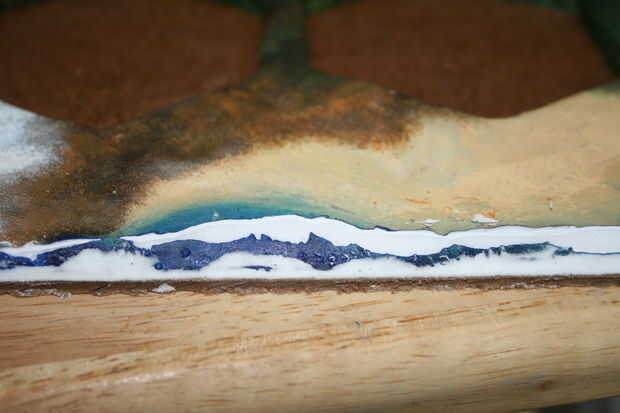 Poner en una capa fina de pegamento para sellar la madera prensada.