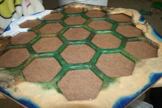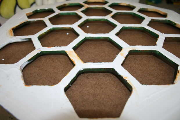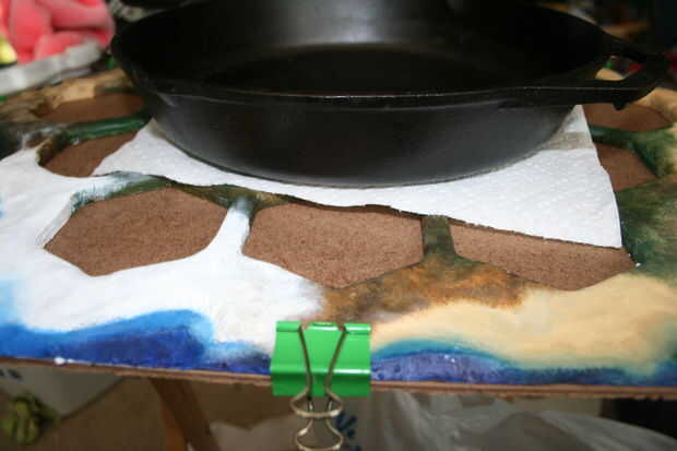 Poner pegamento en el cartón pluma expuesto y relleno, dejar secar y pintar.