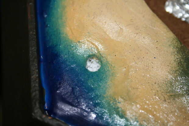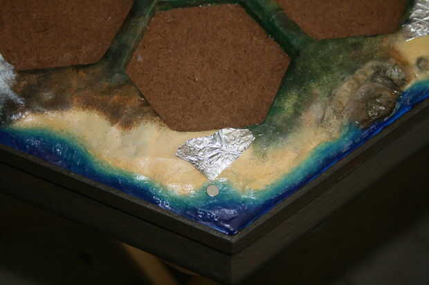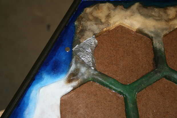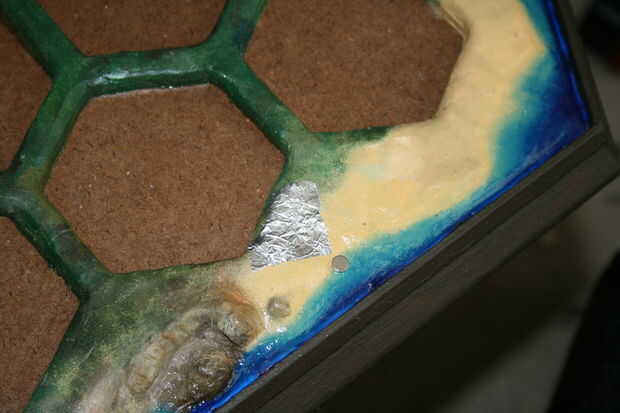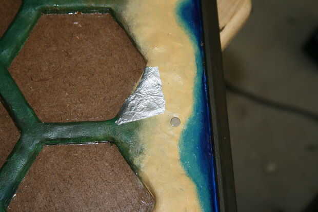 Pegar los imanes en los agujeros y poner una buena cantidad sobre el imán, así.