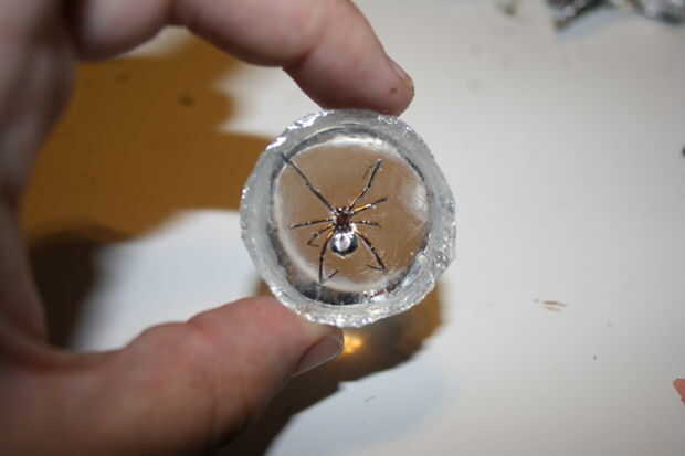 Mezclar otro lote de resina y Vierta lentamente sobre su araña.