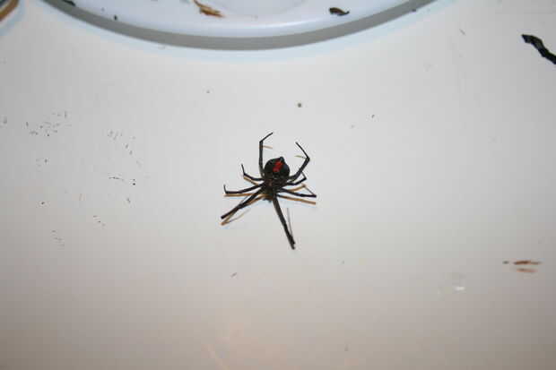Captura de la araña en un recipiente de vidrio y ponerlo en el congelador para acabar con él. Ahora algunos de ustedes pensará que esto es cruel, pero francamente congelar es probablemente cómo ella habría muerto en la naturaleza cuando el invierno llegó de todos modos. Y el hecho de que mi marido habría matado ya que tenemos un niño muy pequeño que podría matar una sola mordedura de esta araña muy venenosa.