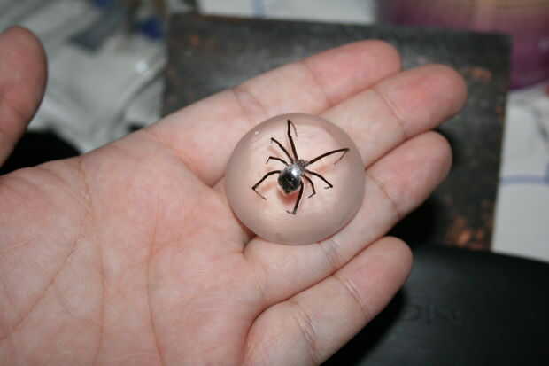 Con la izquierda sobre resina, pintar una fina capa sobre la araña todo. No hice este paso como sólo descubierto fue un problema hasta después, pero a veces obtendrá burbujas que cubren su araña todo que no ves hasta que ha puesto en marcha.