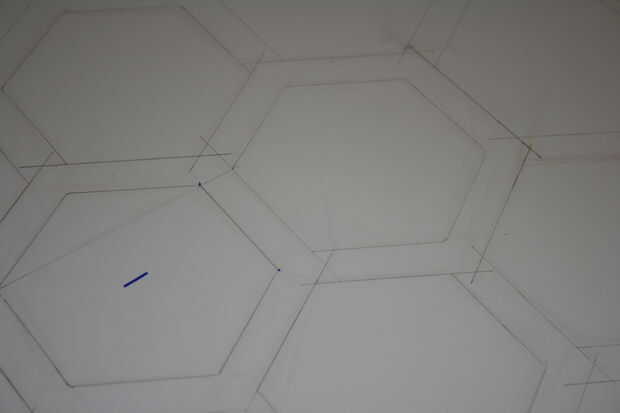 Después de dibujar que hexagonal tendrá que compensar otra media pulgada para formar sus próximo esquinas.