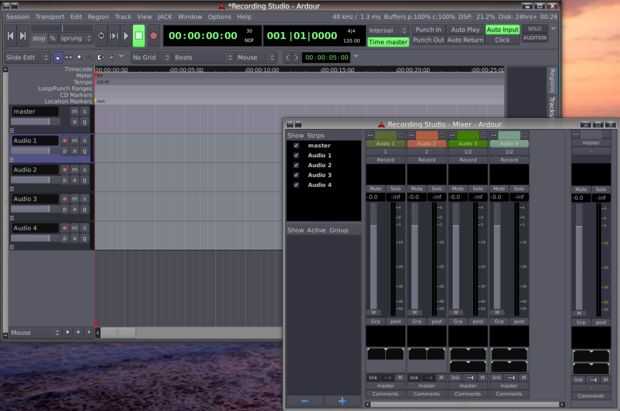 Tiendo a preferir es el DAW de Ardour, escrito por Paul Davis, el creador de Jack Audio Connection Kit sí mismo. Esta herramienta es muy flexible, como cada pista es tratado como un componente independiente para efectos de salidas y entradas disponibles. Además, cada pista puede tener un número arbitrario de puertos de entrada, un número arbitrario de puertos de salida (que no es necesario para que coincida con el número de puertos de entrada), su propio pan y controles de ganancia y una serie de plugin incorporado, que le permite asignar filtros y plugins para cada pista.