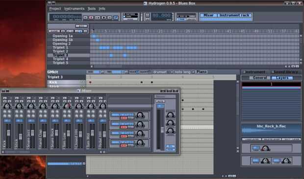 Hidrógeno fue creado específicamente como un tambor de secuenciador y sampler. El programa mantiene una base de datos de batería diferentes sonidos, que se aplican a los patrones. Estos patrones luego son seleccionados para jugar en la línea de tiempo para que cada patrón (que deberá coincidir con el medidor de la canción) representa una medida de la percusión. De esta manera, se puede manipular la pista de percusión, para que cambiar el patrón, puede alterar la percusión en todas las medidas que contiene ese patrón específico.