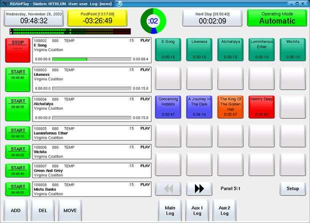 En el extremo superior del espectro es Rivendel, una solución de automatización completa para radiodifusión, incluyendo características como la programación, registro, así como todas las funciones enumeradas en los dos programas anteriores. Este programa realmente es utilizado por varias estaciones de radio alrededor del país para administrar sus listas de reproducción y programación de programa.