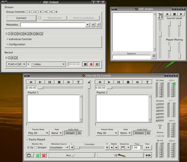 El siguiente nivel de featureset de difusión es la Internet DJ Console. Este programa incluye complejas listas de reproducción, soporte de micrófono DJ, entradas auxiliares e incluso apoyo de la gestión del teléfono, así que usted puede manejar más complejas actuaciones de DJ streaming, ya sea para un espectáculo de llamada entrante, hablar de radio, o un juego estándar de formato de radio de la música.