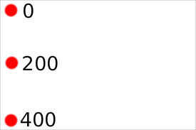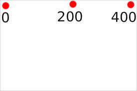 - El primer número es localizar donde se ubicará el rectángulo. Mira la primera imagen. Hay tres puntos rojos en la parte superior, un etiquetado 0, uno etiquetado como 200 y un etiquetado 400. Por lo tanto, la izquierda es 0, la esquina derecha es 400, y la media es de 200. Así que su primer número se localiza donde estará situada la esquina superior izquierda de su rectángulo. Así, en el ejemplo, mi rectángulo está situado en 200, en el centro exacto del eje x. El primer número controla donde en el eje x la esquina izquierda (arriba) se ubicará, a ser simple.