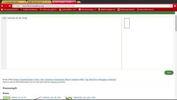 - El cuarto número indica cómo altura hacer el rectángulo. Así, en nuestro caso, que es 200 altos. Así que ahora tenemos 200, 200, 200, 200. Así, en vez de un rectángulo, que realmente tenemos un cuadrado! Pero no quiero confundirte, ahora! Puede cambiar los números para cambiar el tamaño o la ubicación de su rectángulo. Revisa el tercer cuadro para ver la plaza que hicimos. La cuarta foto muestra otro rectángulo con las coordenadas de: 20, 10, 40, 75.