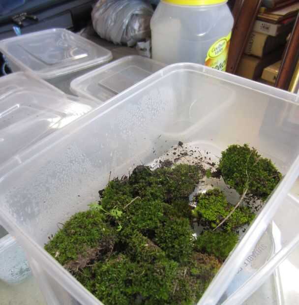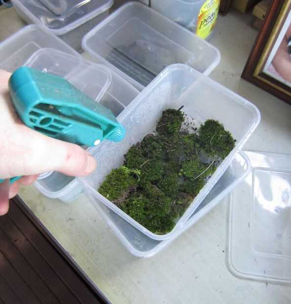 Cuando se pone en un recipiente puede que necesite rociar si es seco. Es mejor en spray que en spray. Generalmente decir dos aerosoles con el pulverizador y ver como va. Si usted echa un vistazo a mis fotos pueden ver el nivel de condensación en las paredes de los contenedores. El truco no es sobre el agua como usted consigue más del molde. Si el musgo es agua registra a menudo da para arriba. Underspraying significa el musgo parece seco y crujiente.