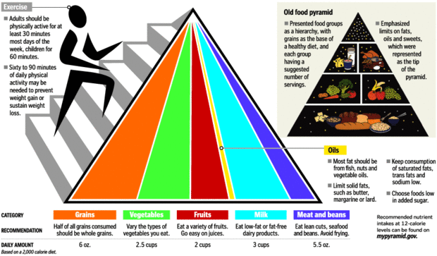 Conceptos básicos... La pirámide de alimentos. Mayoría de la gente sabe lo que es y no entraré en mucho detalle. Es una gran manera de saber cuánto de qué alimentos debe comer. El cuerpo humano es un sistema complejo que necesita una gran variedad de nutrientes para funcionar correctamente. La pirámide alimentaria es una referencia fácil de usar para lo que usted debe comer para mantener su sistema funcionando. Si usted está comiendo de todo en la pirámide probablemente estás haciendo gran desde un punto de vista de la dieta saludable. La dificultad surge cuando limitamos excesivamente ciertas categorías de alimentos en la dieta.