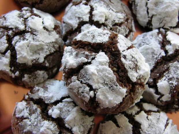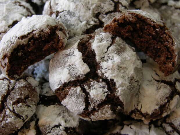 Esta receta de Penzeys, de la que soy un cliente habitual, hace galletas deliciosas, bocados de brownie masticable con un top bonito, lacy copos de nieve, ideal para temporada de nieve y las fiestas.