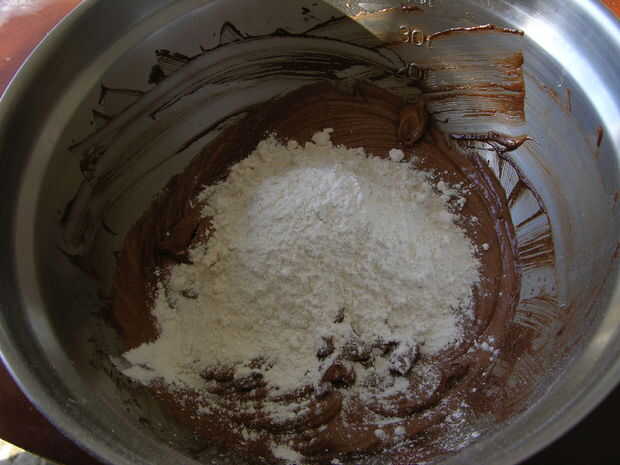 Agregue la mezcla de harina, mezclar bien con una batidora de mano.