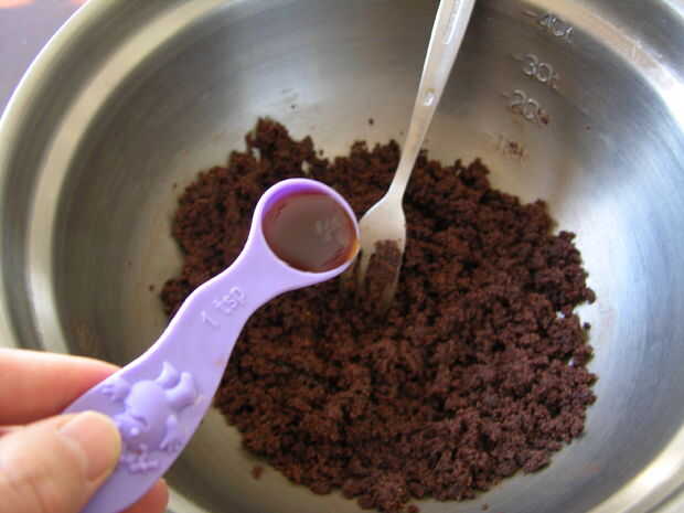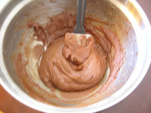 Agregar cacao en polvo, mezcla bien con un tenedor o un batidor pequeño hasta que esté suave.