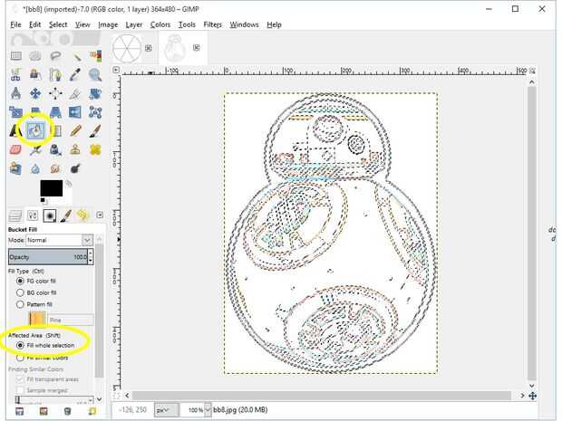 Utilice la herramienta de cubo para rellenar toda el Área seleccionada con el negro.
