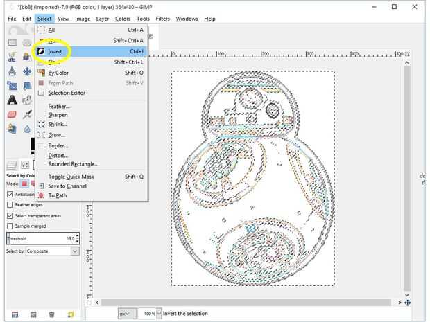Vaya al menú Editar y seleccione invertir. Ahora ha seleccionado todos los del no-espacio en blanco, incluyendo ese pequeño margen alrededor de su contorno.