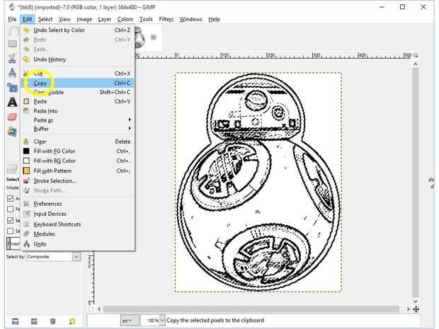 Vaya al menú Editar y elija copiar para copiar solo el contorno negro.