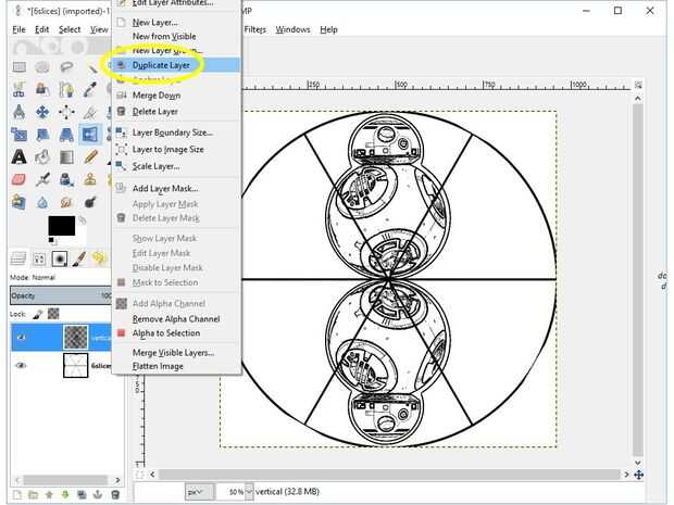 Ahora tenemos una capa con una imagen doble de BB8 y la capa de rebanadas de pastel que nos estamos dejando solo.