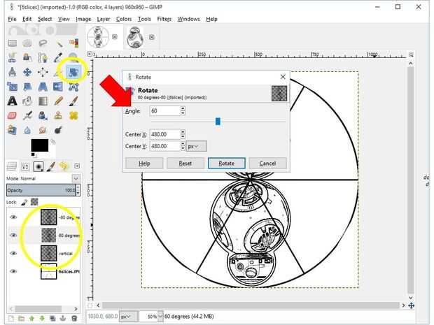 Seleccione otra capa y girar -60 grados para hacerla ir a la izquierda.