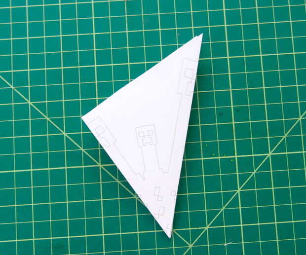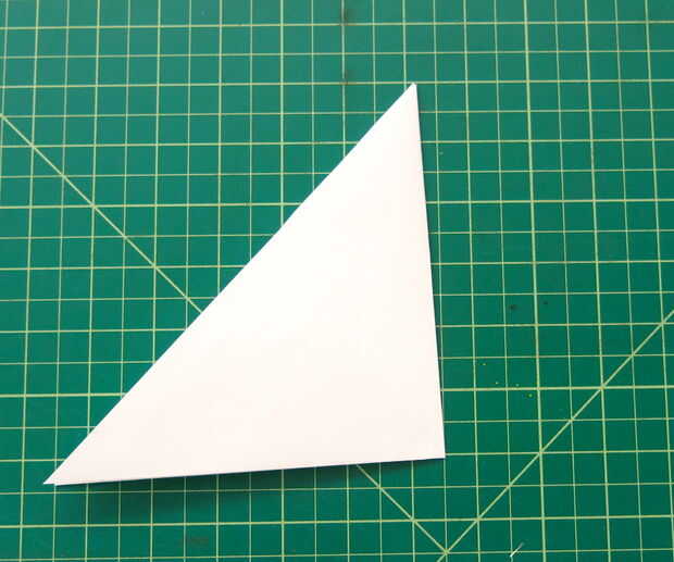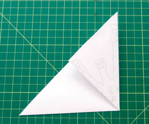 En primer lugar, dóblalo diagonalmente así que usted puede cortar el papel extra y te queda sólo una plaza. No corte el diseño.
