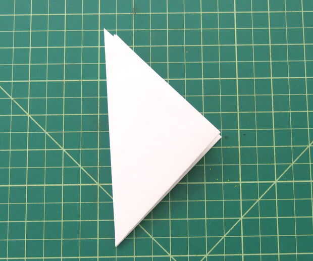 Cómo, dóblela e introdúzcala en un triángulo para que el diseño es de la extrema derecha y es hacia arriba.