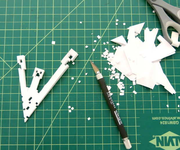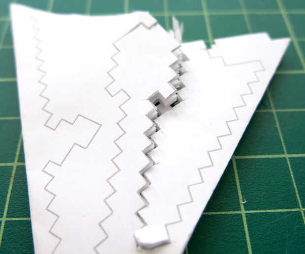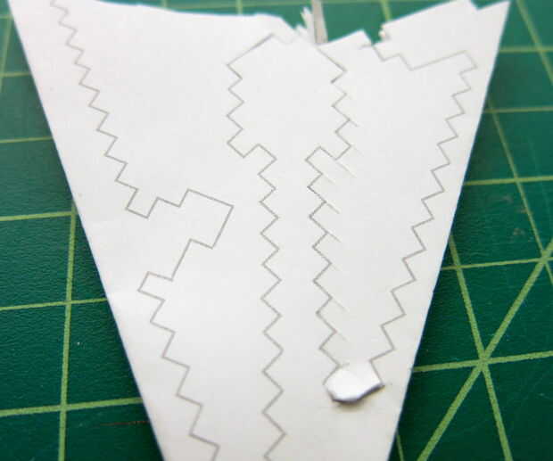 Me di cuenta de que para las armas, que ayudó a hacer cortes de aberturas con un cuchillo del exacto todo en una dirección hacia abajo de un lado de un arma y luego hacer las ranuras van al revés. Era mucho más fácil que tratar de como cortar con unas tijeras. Puedes ver en la imagen 5 y 6.