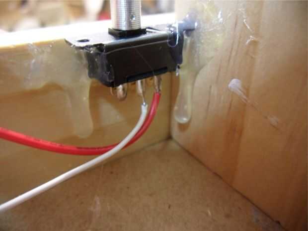 Conseguir la pistola de pegamento caliente del derretimiento hacia fuera otra vez y pegar el portapilas en la parte inferior de la tabla. Asegúrese de que usted ponerlo en algún lugar cerca de la placa porque realmente no hay razón para tener largo los cables por todas partes. (ver primera foto)