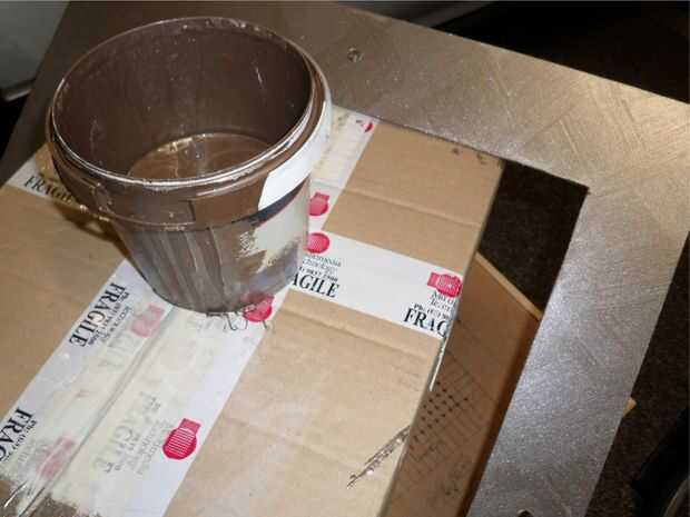 Tenía poco de pintura en la vertiente usé simplemente para pintar la pieza superior de MDF de 3mm (la parte que rodea el cristal)