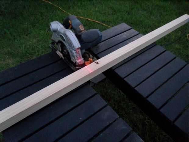 3. Cortar el pino de 40 x 40 mm en cuatro longitudes de 45cm (ver tercera foto)