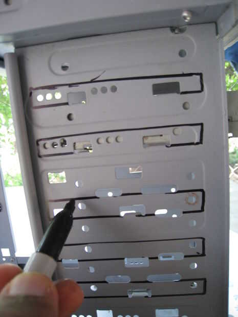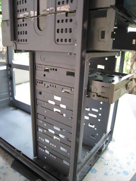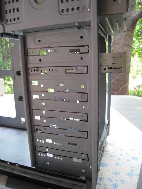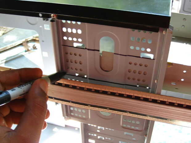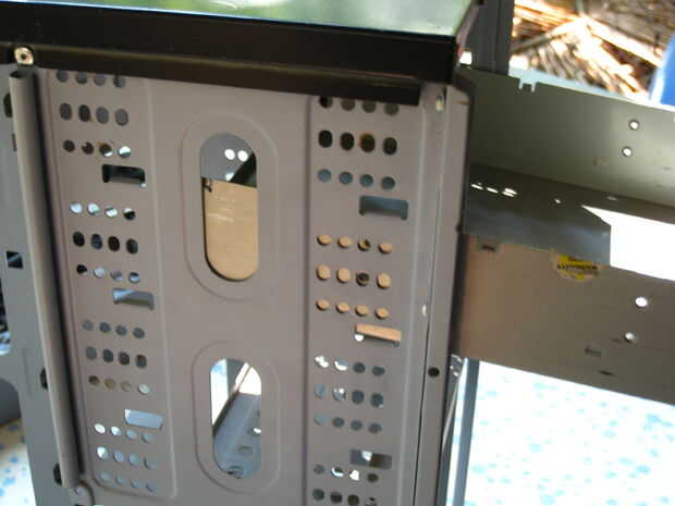 Para las bahías de 5 1/4" coche, decidí utilizar las ranuras de corte en el chasis para placas de apoyo para soportar el peso de la bandeja y es contenido y para integridad estructural adicional.