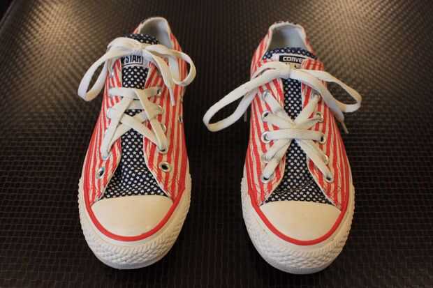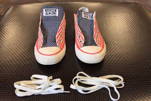 Nota: pueden las estrellas y las rayas de estos chic y fotogénico Converse (TM?) recordar que son 100% libres de hacer ambos zapatos en el mismo diseño de su corazoncito, si desea.