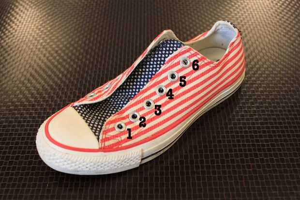 Para asegurar estas instrucciones son claras como sea posible, por favor, quitarse los zapatos antes de empezar y tiene frente a usted. Esperemos que hace falta decir a tomar sus cordones, también. El ojete más cercano a la horma de sus zapatos se denomina ojal 1, y el ojete más cercano a donde sería el tobillo se denomina ojal 6.