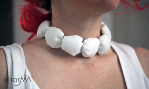 ¿El collar de Wilma fue hecho de fieltros "rocas" Unidas blanco cinta... el vestido es comprado de tienda (puedes decir corría fuera del tiempo?