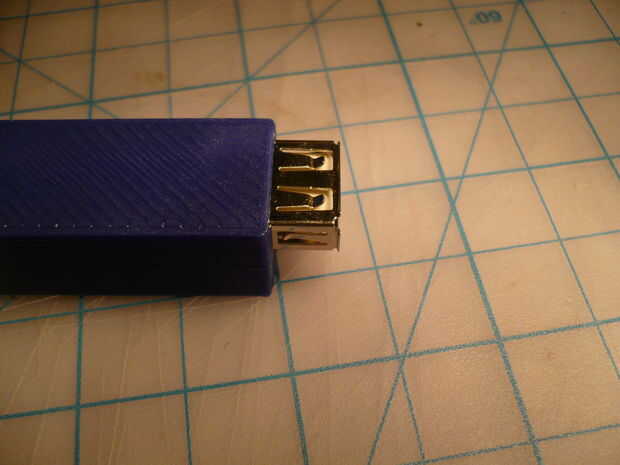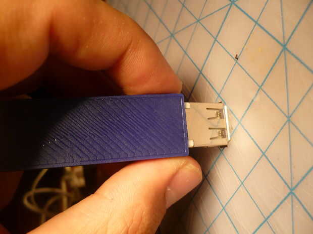 Tratar de empujar el USB a través del agujero rectangular en la parte superior de la caja.