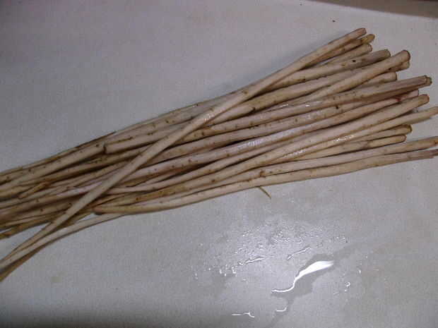 La bardana es más crujiente en lugar de rábano. El grado de crujiente nos daría una especie de "valor agregado". Bardana tiene que ser hervida, antes de que se empapa en la sopa. El sabor es bueno.