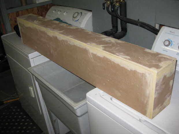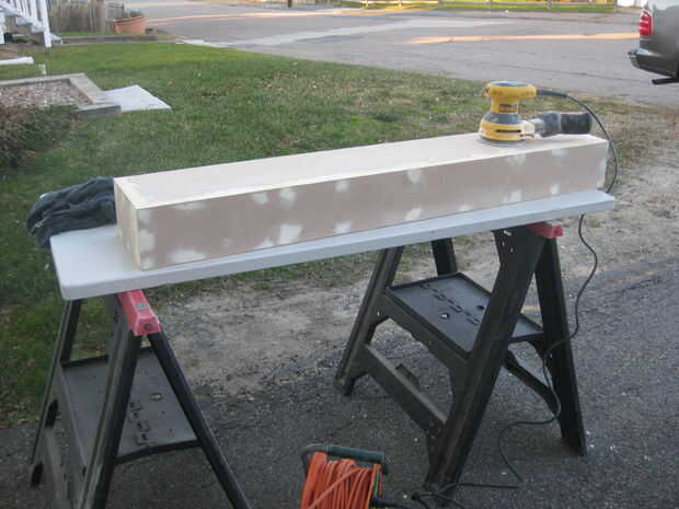 Ya que quería que el aspecto de una losa maciza flotante en la pared, tengo que llenar todas las costuras. He utilizado masilla de madera y una vez que estaba seco, yo fuera había lijado con una lijadora orbital.