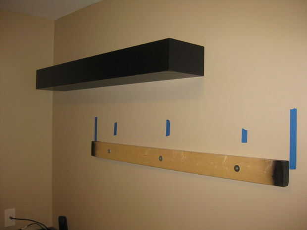 I establecidos y perforar algunos agujeros en la parte superior de los estantes así que pude fijar a las calas. Algunas personas en tornillo de la parte inferior, pero se trata de dos fuerzas-gravedad y cizalla. Tornillos en la parte superior son mucho mejores a luchar contra el cortante de tornillos en la parte inferior tratando de sostener el peso. Usé cinta para que no se para mar la pintura.