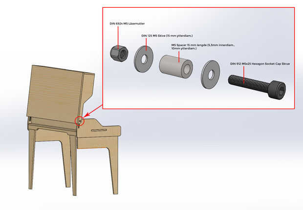 Se necesita 2 tornillos, 4 arandelas, espaciadores de 2 y 2 tuercas para el montaje. Y sí, por supuesto, un montón de tornillos, bisagras de unos pocos y algunos pegamento :)