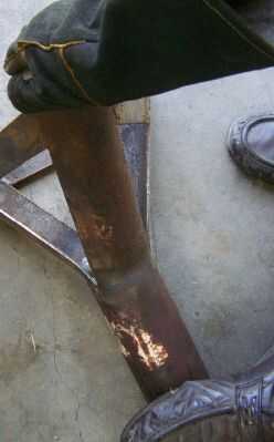 Una vez más, los extremos de mis tubos fueron desiguales de un soplete. A continuación he marcado donde cortar para que todos los extremos de tres sería bastante incluso uno con el otro y cortar con una amoladora principal equipada con un disco de corte. Estos soportes de gato tienen tres patas. Incluso si una pierna es ligeramente más larga que otro, el soporte del gato seguirá siendo estable. Pero, intentar conseguirlos como incluso como sea posible para que el peso del coche es compartido igualmente por cada pierna.