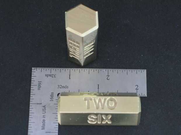 Hice una prueba con una tuerca de acoplamiento de la varilla roscada (instructable aquí) y le gustaba el resultado. Ahora fue a lo real - stock de hexagonal latón aleación 360.