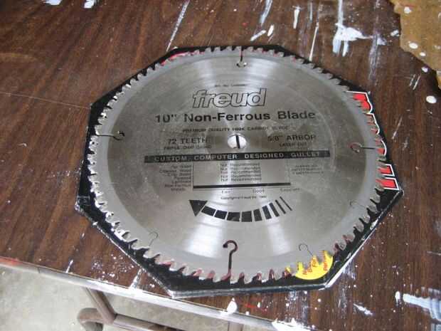 Hay muchas maneras para cortar latón en pedacitos más pequeños. Trabajo una sierra de mano, caja de ingletes, archivos y papel de lija para suavizar los bordes. Llego a tener una mesa de corte de metales no ferrosos Sierra de mis viejos tiempos battlebot. (Battlebot Flickr colecciones disponibles ) El latón es un metal no ferroso, por lo le daría un buen liso corte en los extremos, es necesario lijar ni suavizado. Una hoja nueva como la mía en Amazon.com va por $75.