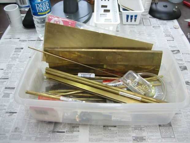 Una tira de latón para actuar como el cátodo en el proceso de grabado - tuve algunos pedacitos de bronce repuesto colocación alrededor y una bonita pieza de 4 "x 10" placa de latón, 0,032" de espesor. No necesita ese ancho o espesor, 2 "x 10" y 0,025" de espesor es suficiente. Mayoría de tiendas de hobby bueno lleva algunos metales de K & S ingeniería. Uno que funcione es K & S parte #239. De longitud de 12" y puedes conseguir 3 piezas! Cuesta alrededor de $11.
