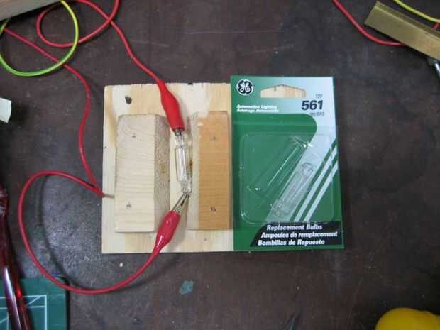 - Bombillas de automóvil de 12V - usé tipo 561 y ésos funcionó bien. Estos se utilizan para limitar la corriente en el circuito. Costo $1,96 en la tienda de autopartes.