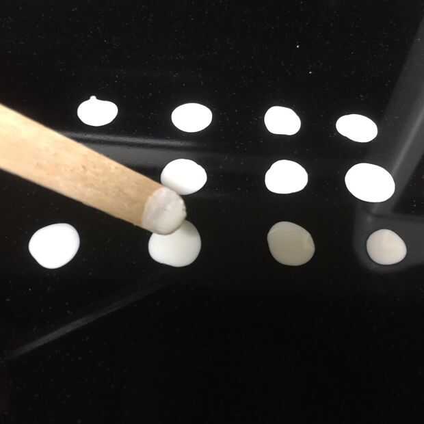 Sobre una superficie lisa, coloque una gota de látex líquido sobre 3/4 pulgadas de diámetro. Déjelo secar. Sugerencia: Utilice un secador de pelo para acelerar el proceso. Una gota por gusano, así que ir salvaje, puede hacer que cientos de personas en cuestión de minutos!
