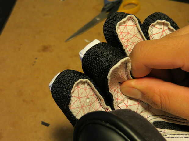 -Mantener los dedos insertos sueltos y no trate de envolver la cinta demasiado firmemente. Si los insertos de agarre demasiado apretado en los dedos, estirar la cinta presionando el interior de los rellenos, hacia el exterior.